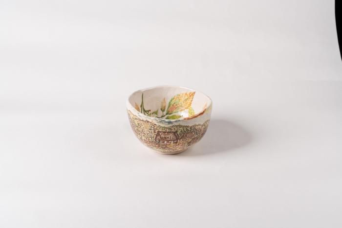 山梨窯の陶器鉢 白川郷の風景と季節の花を描いた食器【岐阜・高山】
