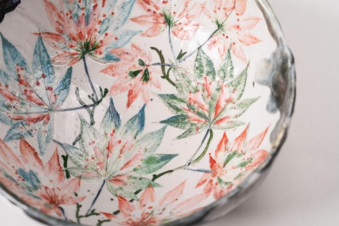岐阜県高山市久々野町に工房を構える【山梨窯】が、一つひとつ丹念に仕上げた陶器です。飛騨の山々に抱かれた豊かな自然の中で採れる陶土を原料として、独自に調合した釉薬を用いて焼き上げています。四季の草花、秋の紅葉を器の中で感じ愉しんでいただける逸品です。すべて職人の手描きによるため、同じ図柄でも一つとして同じものはなく、それぞれに異なる味わいが感じられます。